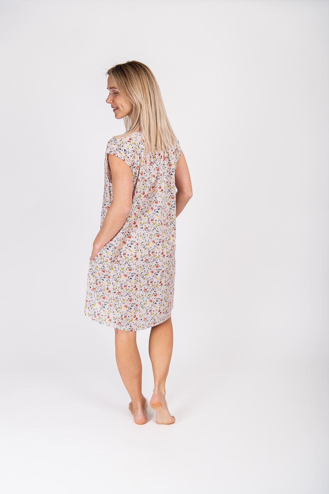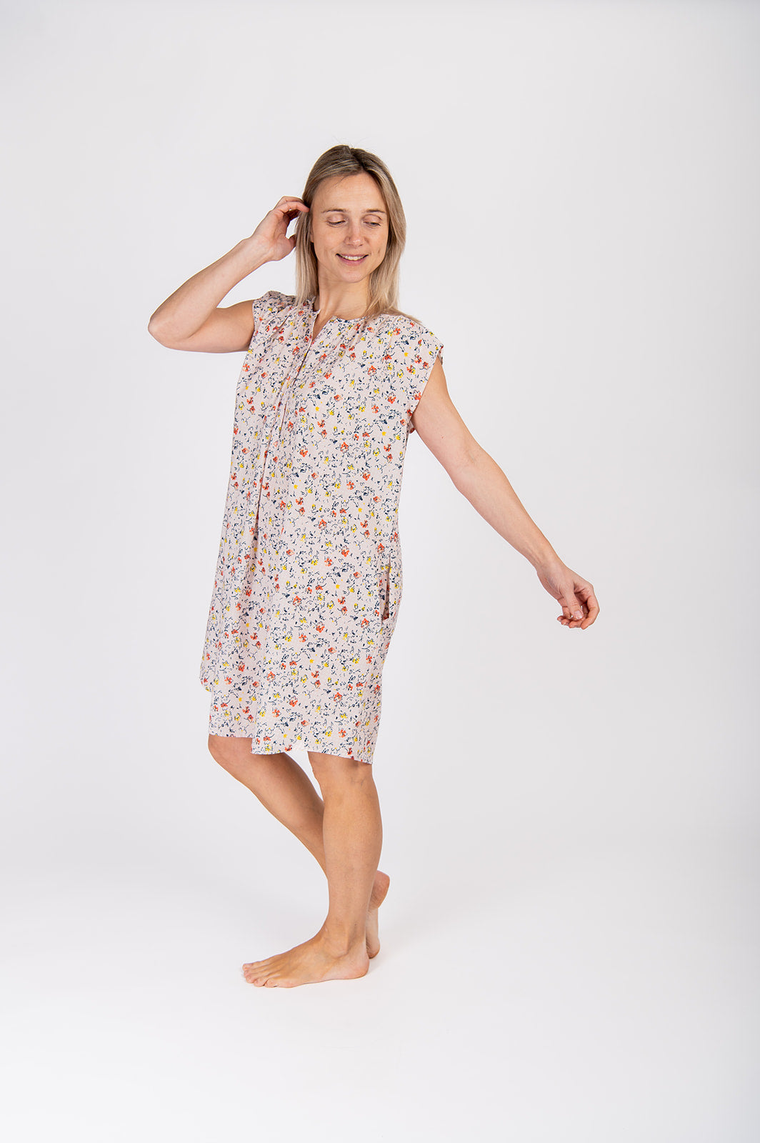 Het zachte katoenen nachthemd van Dorélit is bedrukt met romantische bloemetjes. De sluiting is aan beide kanten verfraaid met ruches voor en speels karakter.